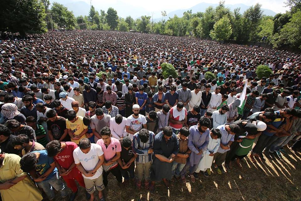 اطلاعات کے مطابق جواں سال کمانڈر کے جنازے میں ڈیڑھ لاکھ سے زائد لوگوں نے شرکت کی اور اسلام اور آزادی کے حق میں نعرے لگا ئے گئے۔ برہاں وانی کے جلوس جنازہ میں پاکستانی پرچم بھی لہرائے گئے ،اور اس موقع پر مجاہدین نے گولیوں کے 21 راونڈ چلاکر ،شہید رہنما کو سلامی دی۔ برہان کی شہادت کے بعد پوری وادی میں مظاہرے شروع ہوئے ہیں۔ کٹھ پتلی انتظامیہ کی طرف سے پوری وادی میں کرفیو نا فذ کر دیا گیا ہے۔