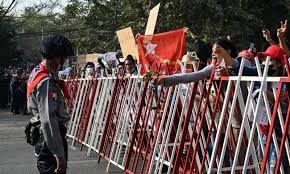 میانمار میں فوجی بغاوت کے خلاف مظاہرے جاری ہیں اور مختلف شعبوں سے تعلق رکھنے والے افراد سڑکوں پر آگئے ۔میڈیارپورٹس کے مطابق پولیس نے میانمار کی سیاسی تحریک کی سربراہ آن سان سوچی پر دوسرا الزام بھی عائد کردیا، میانمار فوج نے ایک بار پھر ملک میں جلد انتخابات کے بعد اقتدار منتخب نمائندوں تک منتقل کرنے کی یقین دہانی کرادی۔میانمار میں سول نافرمانی کی تحریک زور پکڑ رہی ہے ، ینگون میں ریلوے ملازمین نے ریلوے ٹریکس پر لیٹ کر احتجاج کیا، جمہورت کی بحالی کے لیے نعرے لگائے ۔مظاہرین نے سینٹرل بینک جانے والے راستے بند کر دیے اور بینک ملازمین کو سول نافرمانی تحریک میں شامل ہونے کی پیشکش کی، احتجاجی تحریک روکنے کے لیے ملک بھر میں انٹرنیٹ معطل کر کے اضافی فورسز تعینات کر دی گئی ہے ۔دوسری طرف پولیس نے آن سان سوچی پر درآمدی و برآمدی قوانین کی خلاف ورزی کے بعد قدرتی آفات سے نمٹنے والے قانون کی خلاف ورزی کا الزام بھی عائد کردیا ہے ۔یاد رہے کہ میانمار میں فوج نے یکم فروری کو اقتدار پر قبضہ کرکے حکمراں آن سان سوچی کو حراست میں لے لیا تھا۔