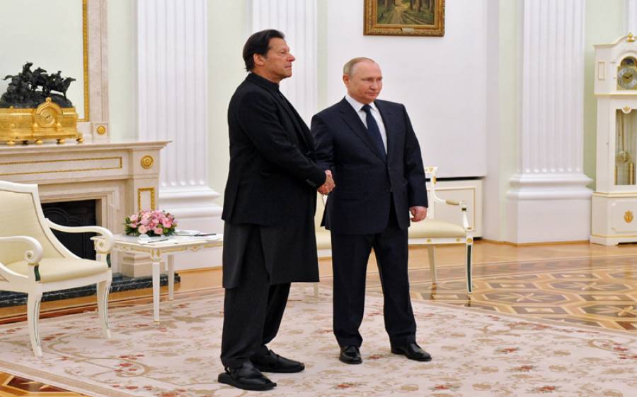 وزیر اعظم عمران خان نے روسی صدر ولادی میر پیوٹن سے جمعرات کو ون آن ون ملاقات کی جس میں معیشت ، تجارت اور توانائی کے شعبوں میں تعاون سمیت دوطرفہ تعلقات، علاقائی و بین الاقوامی امور پر تبادلہ خیال کیا۔ قبل ازیں روسی فیڈریشن کے ایگزیکٹو ہیڈکوارٹرز کریملن پہنچنے پر صدر پیوٹن نے وزیراعظم عمران خان کا پرتپاک استقبال کیا۔ وزیراعظم عمران خان اور روسی صدر نے دوطرفہ تعلقات کے تمام پہلوؤں، دوطرفہ تجارت، معیشت اور توانائی بالخصوص پاکستان اسٹریم گیس پائپ لائن منصوبہ میں تعاون اور علاقائی و بین الاقوامی امور پر بات چیت کی۔ یاد رہے کہ23 سال کے بعد کسی پاکستانی وزیر اعظم کا روس کا یہ پہلا دورہ ہے ۔